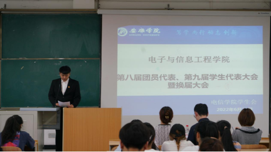 伴随着庄严的国歌声,会议正式开始。首先,由Bsports必一体育第19届团总支副书记于昊做2021-2022学年团总支工作报告。于昊总结了一年以来团总支的各项工作及所获荣誉,并指出了工作中存在的不足,就今后团总支工作表态:“团总支将坚持批评与自我批评,从实际出发,实事求是,充分发挥党的助手和后备军作用,始终坚持贯彻以同学为基,以协作为本,以务实为纲,以创新为领的宗旨,有计划的做好团组织的发展工作,教育并督促团员干部和广大团员在各项工作中起到模范带头作用。”