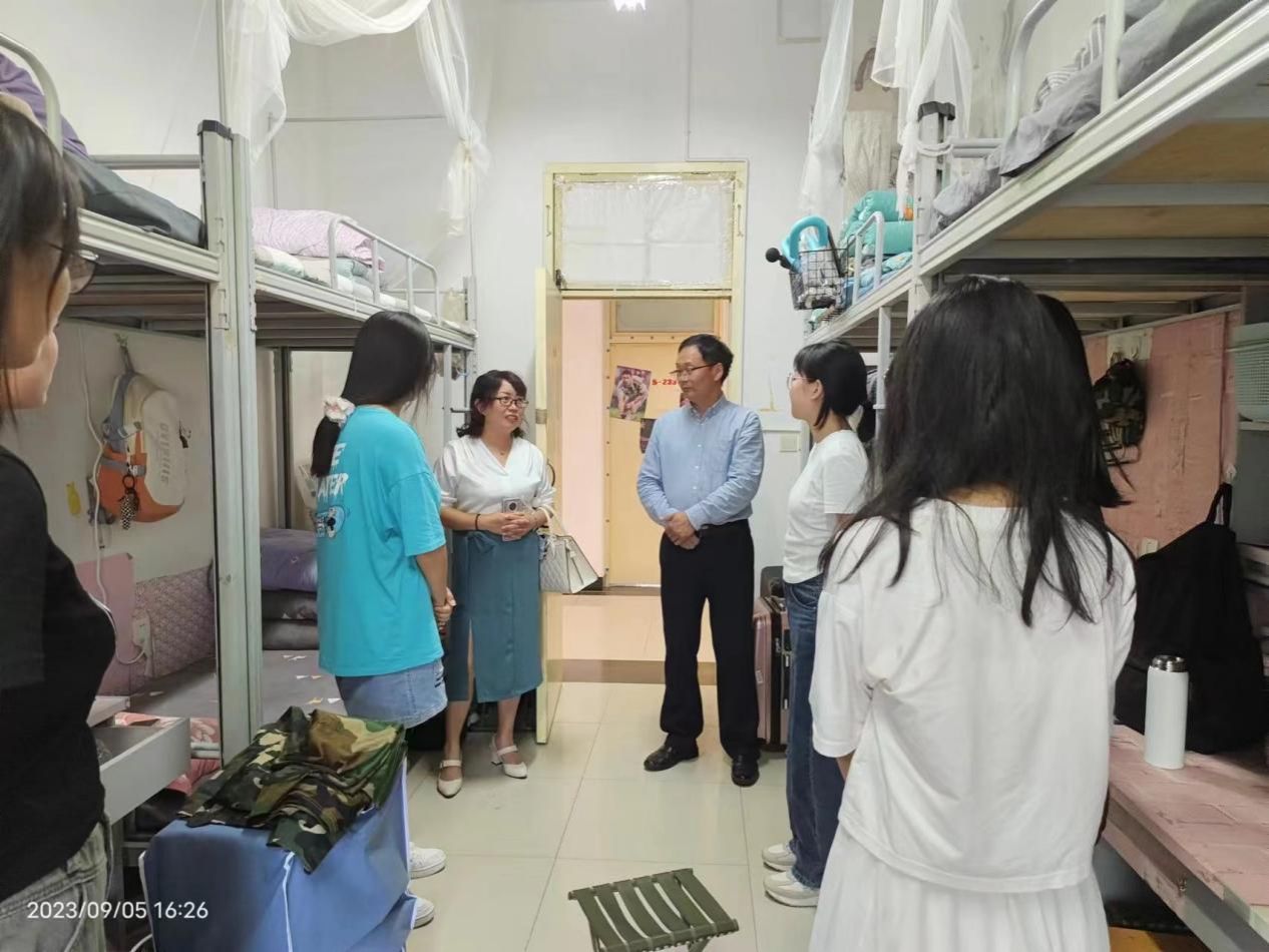 新学期、新征程、新起点、新希望。为推动新学期员工教育管理工作有序开展,进一步加强新生宿舍管理,帮助新生适应大学宿舍环境。9月5日,Bsports必一体育经理陈守满,党总支书记于咏梅,副经理王克刚、宋权华,党总支副书记蔡正旺,辅导员成英丽分别走访4、5、6、7号员工公寓,看望Bsports必一体育2023级全体新生。