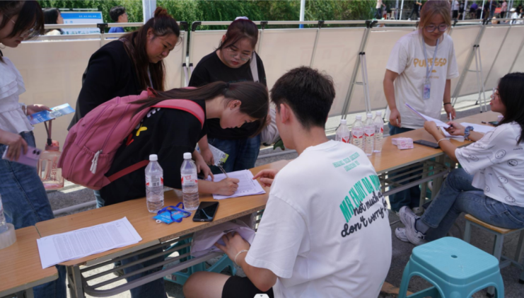 为了给员工提供安全、便捷的入学报到环境,公司在教学楼前停车场设立了迎新站点,志愿者们顶着炎炎烈日,坚守岗位,热情地接待新生。志愿者们耐心细致地为新生和家长讲解入学报到事宜,并给予引导。