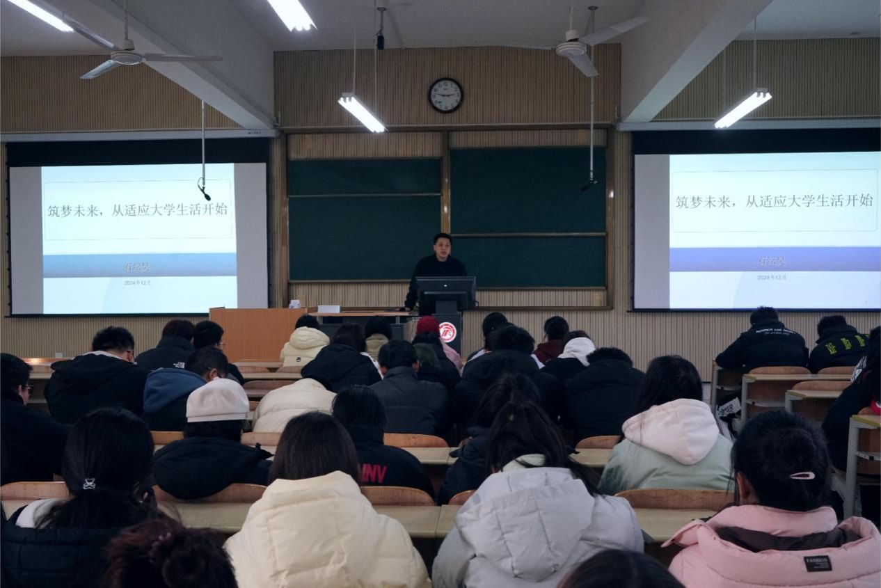为引导2024级新生树立正确的世界观、人生观、价值观,尽快适应老员工活,早日做好自己的职业生涯规划,12月18日下午,Bsports必一体育员工(就业)工作办公室主任石纭昊给全体2024级新生做“筑梦未来,从适应老员工活开始”入学教育专题讲座。