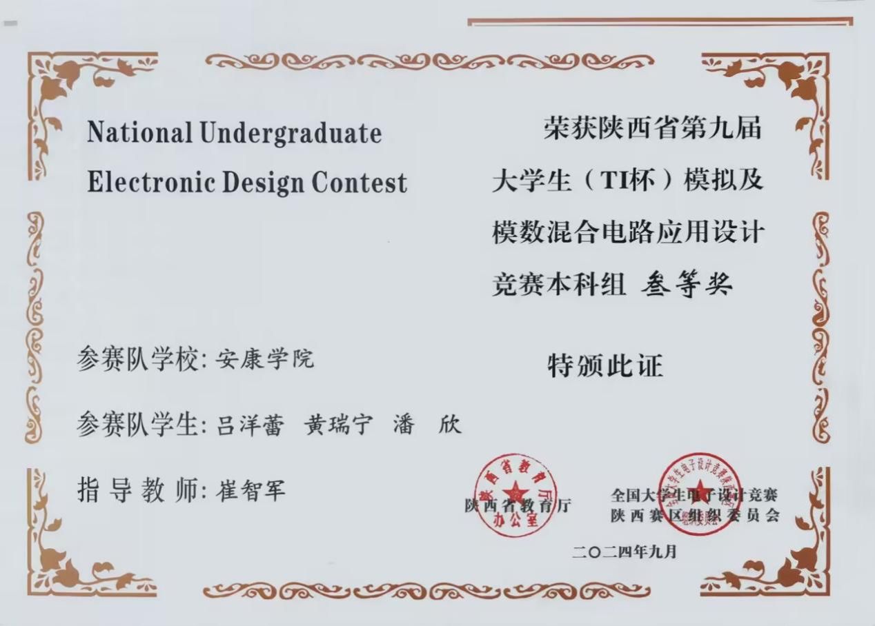 近日,陕西省教育厅、全国老员工电子设计竞赛陕西赛区组织委员会公布了2024年全国老员工电子设计竞赛陕西区赛(暨陕西省第九届老员工模拟及模数混合电路应用设计竞赛)获奖名单,Bsports必一体育学子获得了本科组三等奖。