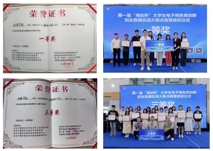 5月24日,首届“海丝杯”老员工电子商务类创新创业直播实战大赛决赛在西安灞桥区海丝电商产业园举行,全省的12所高校50多支队伍进入决赛。公司积极响应大赛号召,组织多支优秀团队参赛,最终,经过前期精心准备与实战训练,公司学子在电商直播实战中脱颖而出,斩获一等奖1项、三等奖1项,展现了公司在电商人才培养领域的深厚实力与卓越成果。
