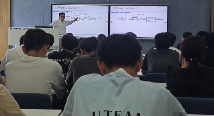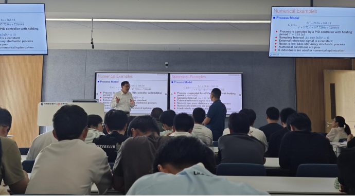 孙连明教授以《基于输出过采样的多个体优化辨识的收敛性改进》为题做学术报告。报告提出,在较差数据条件下,存在测量条件苛刻、环境测量噪音、物理变量难以直接测量、测量数据信息成分不足等问题,会导致计算精度及可靠性降低,难以保证所建立的系统辨识数学模型有效。通过结合输出过采样获得的时域和空域中的循环平稳信息进行数值条件改善,并给出一种新的多个体优化算法来提高全局收敛性,从而建立起更有效的系统辨识数学模型。在报告会最后,公司师生对报告中感兴趣的内容与专家进行了积极交流讨论。