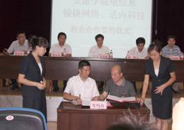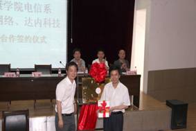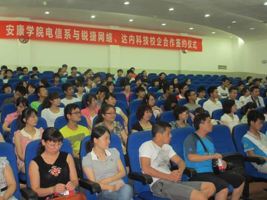6月21下午,在1号教学楼6楼报告厅隆重举行电信系与锐捷网络、达内科技校企合作签字仪式。公司副董事长陈刚教授、锐捷网络西北大区市场总监史光耀、达内科技陕西中心主任陈相峰、教务处处长钟生海、电信系主任张东红、党总支书记李红兵和电信系全体教师,计算机、电子信息工程专业200多名员工参加了签字仪式。大会由张东红教授主持。