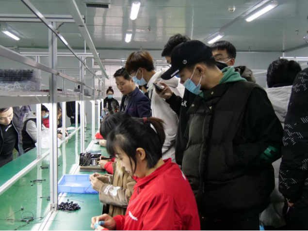公司总经理谭启伟、国内事业部负责人赵敏对来访的师生进行了热情的接待,在公司产品体验店和展厅,赵总向大家讲解了公司产品研发设计历程以及新品设计定位,从移动电源到蓝牙耳机再到智能手环、VR眼镜、平衡车等,都一一进行了讲解。在生产车间,谭总给大家介绍了电池生产线、有线耳机生产线、移动电源生产线和数据线生产线等,并亲自操作自动贴标机,向大家展示了贴标机的使用方法,参观过程中,谭总对大家提出的问题进行一一解答。在四楼品牌管理中心,DM刘昭辉向同学们展示最近设计的磁吸音响。