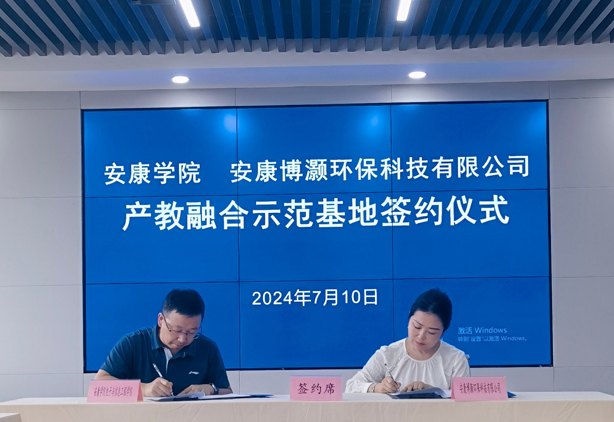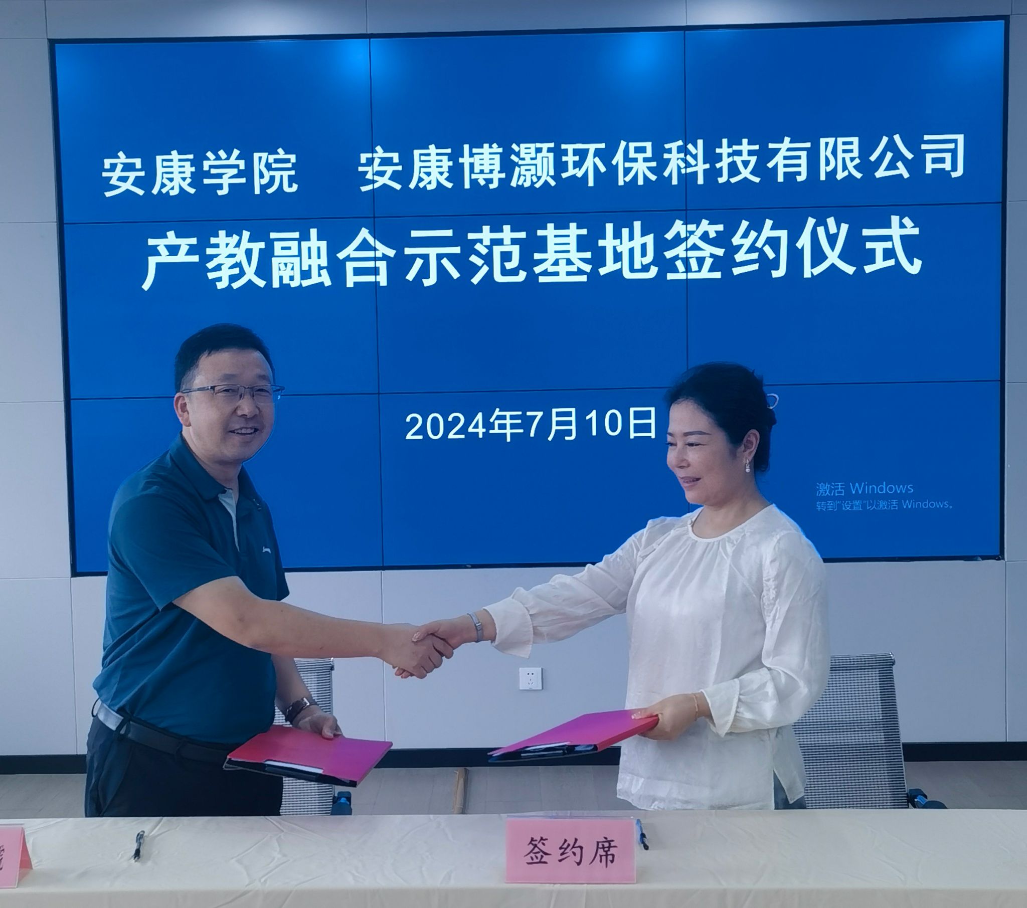 2024年7月10日,在安康博灏环保科技有限公司培训中心,Bsports必一体育与安康博灏环保科技有限公司产教融合签约仪式隆重举行,副经理王克刚、安康博灏环保科技有限公司董事长刘燕出席签约仪式。