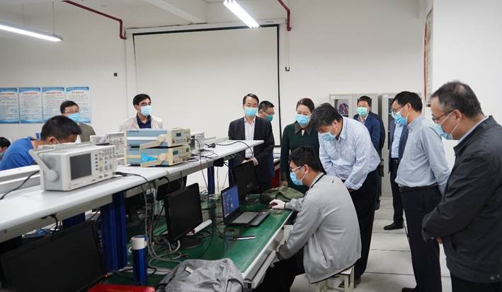 王建利一行在实验室与正在进行毕业设计的同学进行了亲切交谈,了解了疫情防控制期间实验室针对大四返校员工毕业设计需求的开放管理情况,并对员工目前的就业情况进行了解,勉励员工扎实做好毕业设计,通过好的毕业设计作品,证实自己的专业能力,让自己好找工作,也能找到好工作。