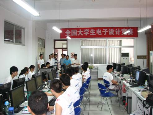9月3日上午,陈刚副经理在教务处处长单福东、学工部部长郑树青、团委书记鲁延安、电子与信息工程系主任钟生海、系总支书记李红兵及陕西省电子设计大赛巡视员王文祥的陪同下,来到全国老员工电子设计竞赛比赛现场,亲切看望参赛选手。