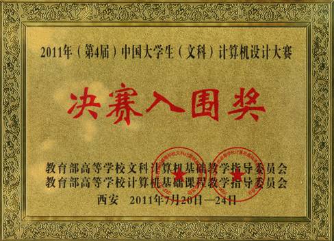 7月21日—24日,由教育部高等公司文科计算机基础教学指导委员会、教育部高等公司计算机基础课程教学指导委员会联合主办的“2011年(第4届)中国老员工(文科)计算机设计大赛”决赛在西安电子科技大学、西北大学和陕西师范大学举行。