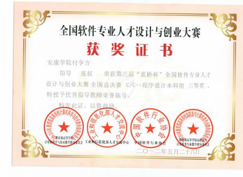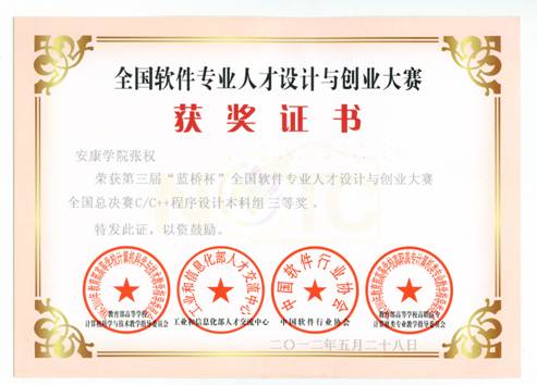 第三届“蓝桥杯”全国软件专业人才设计大赛总决赛成绩于5月27日揭晓,电信系参赛员工获得全国二、三等奖各一项,获陕西赛区奖项23项。
