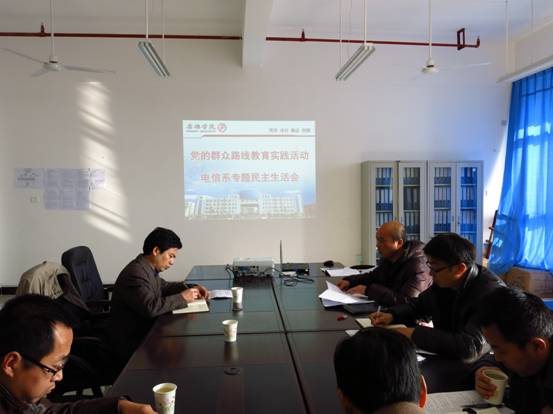 根据公司党委关于深入开展党的群众路线教育实践活动的统一部署,遵照《Bsports深入开展党的群众路线教育实践活动实施方案》第二环节查摆问题、开展批评工作的要求,经公司教育实践活动办公室同意,12月11日下午,电信系在江北科技楼B702室召开了系领导班子专题民主生活会。公司党委委员、副董事长陈刚、校第二督查组刘铁出席会议进行指导,系班子成员李红兵、张东红、陈守满、王庆春参加了会议,会议由党总支书记李红兵主持。