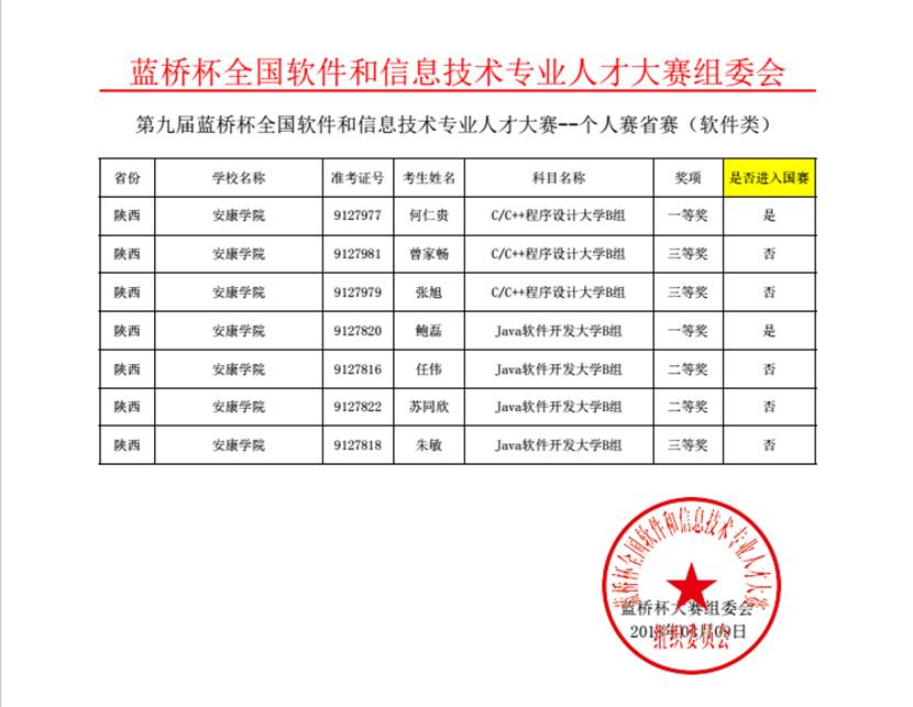 第九届“蓝桥杯”全国软件和信息技术专业人才大赛初赛成绩今日揭晓,公司员工获C程序设计大学B组一等奖1名,三等奖2名,获JAVA程序设计大学B组一等奖1名,二等奖2名,三等奖1名。何仁贵、鲍磊两位同学将代表公司参加5月底在北京举行的第九届蓝桥杯全国总决赛。