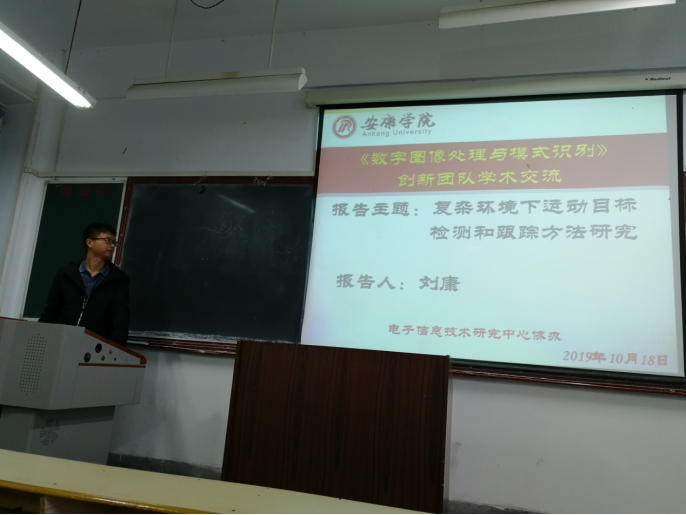 2019年10月18日晚上,公司数字图像处理与模式识别创新团队在江南校区1217教室举行了一次学术交流活动。本次学术交流活动由刘康老师介绍了他在《复杂环境下运动目标检测和跟踪方法研究》课题中所做的一些工作和成果。