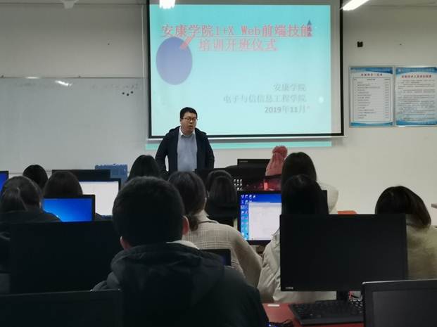 Bsports必一体育邀请合作企业北京传智播客教育科技有限公司黑马程序员Web前端技能培训专家杨定远老师为员工面授。计算机系主任梁建勇老师在开班仪式上简要介绍了公司1+X证书试点工作的进展情况,强调了本次面授的目的和安排。希望同学们能够克服困难积极配合企业讲师利用好本次集中培训,提升自己的专业技能,争取如愿拿到国家级职业资格证书。杨老师简要介绍了Web前端技能认证考试体系、知识模块和培训计划,也对同学们提出了基本要求。