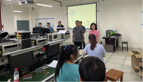 7月24日上午,公司领导班子全体成员、学工办主任石纭昊老师一行来到科技路A601实训室,看望了暑期留校参加2021年全国老员工电子设计竞赛的参赛同学和指导老师,并为师生们带来了关心、问候和鼓励。