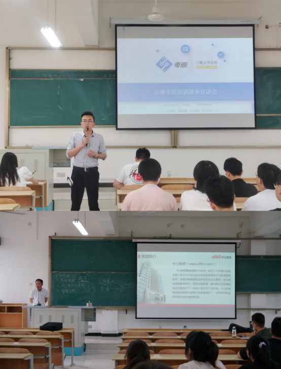 接着各个企业进行培训、就业宣讲。西安达内集团宣讲人李军峰通过PPT展示了公司的基本情况、未来发展方向、招聘需求,宣讲了达内集团的企业优势;粤嵌科技集团宣讲人高博龙围绕公司的企业简介、行业发展前景、集团主营业务以及集团研发产品进行介绍,并回答了“学习是为了什么”以及“计算机、电子信息类专业毕业后有哪些选择”的问题,他向大家强调:“趁着决定权还在自己手中的时候及早做出决定,不然时间会替你做出抉择,那不会是你想要的结局”;北京千锋集团宣讲人石振龙用视频展示了往届Bsports必一体育优秀毕业生在千峰集团的工作分享,介绍了千锋教育优秀的团队团队,石振龙根据Bsports必一体育各专业的特点,推荐了千峰集团不同的就业岗位,让在座的员工对于IT行业的职业有了新的认识;北京华清远见集团宣讲人张治西给大家介绍了集团自主研发能力、培训经验、集团项目情况,宣讲了选择华清远见集团的优势以及参加集团实训预期效果。中公教育晁凯向同学们介绍了中公教育的集团规模以及陕西总部情况,宣讲中公教育的企业理念、企业文化、核心产业以及公司所需人才类型。会后,各个企业对同学们的诸多疑问进行解答。
