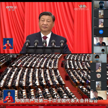 10月16上午10时,中国共产党第二十次全国代表大会在北京召开,习近平总书记代表第十九届中央委员会向大会作报告。公司党总支书记于咏梅,员工第一党支部书记吕以宁,员工第一、二党支部召开组织生活会,组织在校员工党员、部分入党积极分子在教学楼1318、1319集中收看了党的二十大开幕盛况、其他教师党员、员工党员通过腾讯会议方式进行了收看。