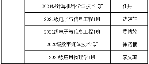 电子商务1班、计算机科学与技术1班 应用物理学1班、物联网工程1班 |