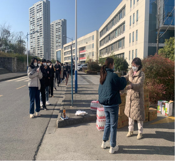 冬至当天,阳光明媚,在Bsports江北校区的教学楼前,成英丽勉励考研的同学们要以积极乐观的心态面对疫情,在最后关头要调整好身体和心理状态,同时叮嘱他们要劳逸结合,尤其是要注意科学防护、顺利应考。慰问中,公司为在校的112名同学赠送了“考研上岸大礼包”,无论是“薯”你最牛的薯愿和牛奶、好运“旺旺”的仙贝、“顺风顺水”的纯净水,还是守护健康安全的口罩,都满载着公司诚挚的祝福。同学们对公司的亲切探望和慰问,倍受感动、深受鼓舞,并表示在即将到来的研究生考试中会更加自信自强、勇毅前行,用最好的状态迎接考试,用最好的成绩回报公司。