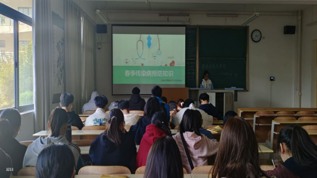 2022级各班团支书讲解了春季传染病预防等相关知识,提醒大家当前又到了传染病高发季节,要做好个人防护工作,防止疾病趁虚而入。合理膳食,增加营养,要多饮水,摄入足够的维生素,宜多食些富含优质蛋白、糖类及微量元素的食物,积极参加体育锻炼,多到郊外、户外呼吸新鲜空气,增强体质。