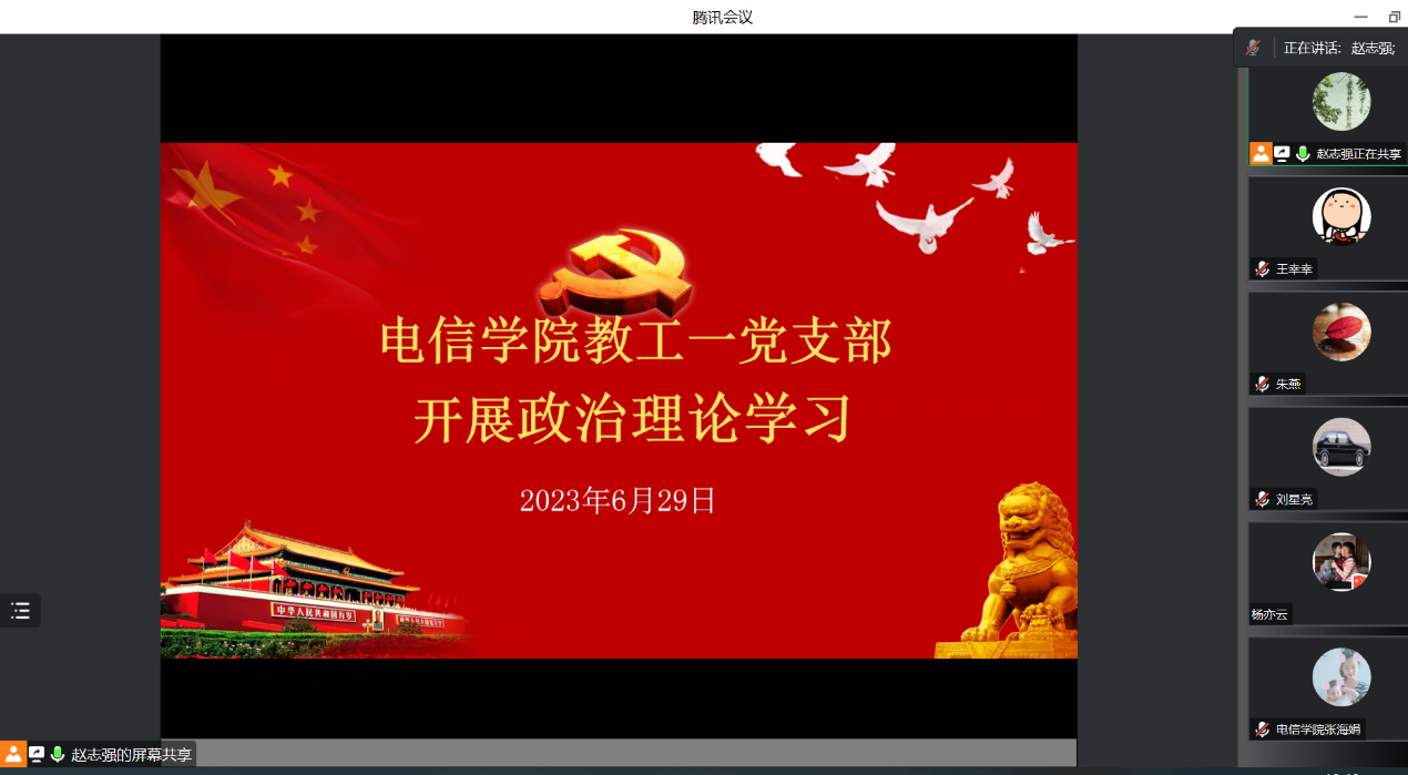 2023年6月29日晚,Bsports必一体育教工第一党支部通过腾讯会议开展纪律教育暨政治理论学习,会议由教工第一党支部书记赵志强主持,支部全体党员参加本次会议。