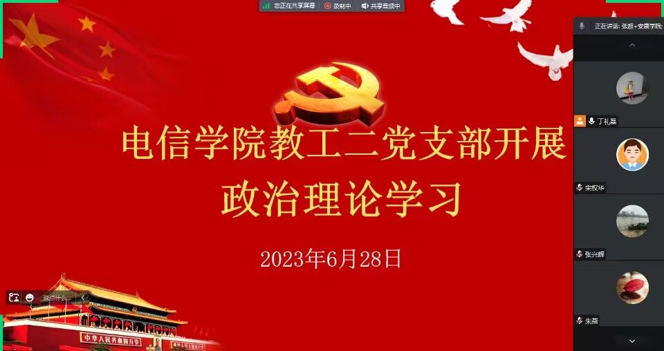 为学习和落实习近平总书记2023年6月2日在文化传承发展座谈会上的重要讲话精神,进一步贯彻落实中共Bsports委员会文件《关于在全校开展纪律教育学习宣传月活动的通知》精神,6月28日晚上,Bsports必一体育教工二党支部通过腾讯会议开展了纪律教育月暨政治理论学习,会议由支部书记丁礼磊主持,支部全体党员参加了本次会议。