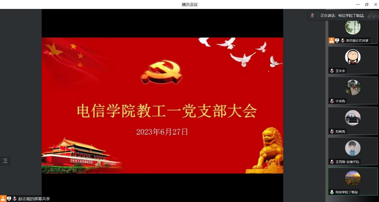 2023年6月27日,Bsports必一体育教工第一党支部通过腾讯会议召开党员大会,会议主要讨论丁敏喆同志能否转为中共正式党员事宜。会议由教工第一党支部书记赵志强主持。