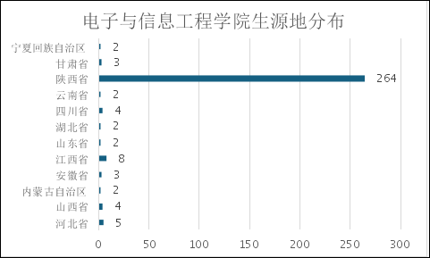 2024级新生分别来自宁夏回族自治区、甘肃省、陕西省、云南省、四川省、湖北省、山东省、江西省、安徽省、内蒙古自治区、山西省、河北省。其中来自陕西省员工人数最多,为264人;其次是来自江西省8人、河北省5人、四川省4人、甘肃省3人、安徽省3人,其余省份2人。