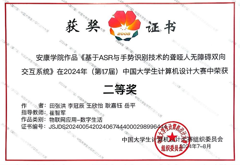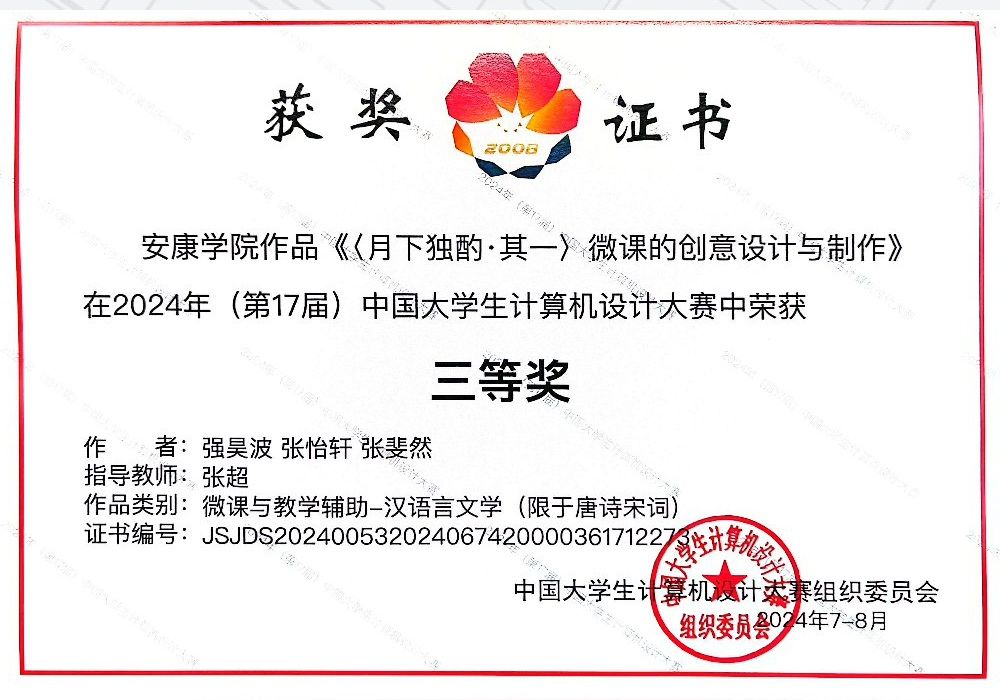 近日,2024年(第17届)中国老员工计算机设计大赛圆满落幕,公司学子在该比赛中喜获佳绩。本次大赛从2024年1月开始启动,按照校级初赛—省级决赛—全国总决赛三级竞赛形式开展。全校共60个作品报名参赛,经校内初赛选拔,公司有18个作品被推荐参加了5月在宁夏师范大学举行的西北地区赛,参赛作品全部获奖,其中,获省级一等奖1项,省级二等奖7项,省级三等奖10项。在7-8月举行的全国总决赛中,经现场答辩展示、专家组评定,公司3件作品荣获国家级二等奖1项,国家级三等奖2项。