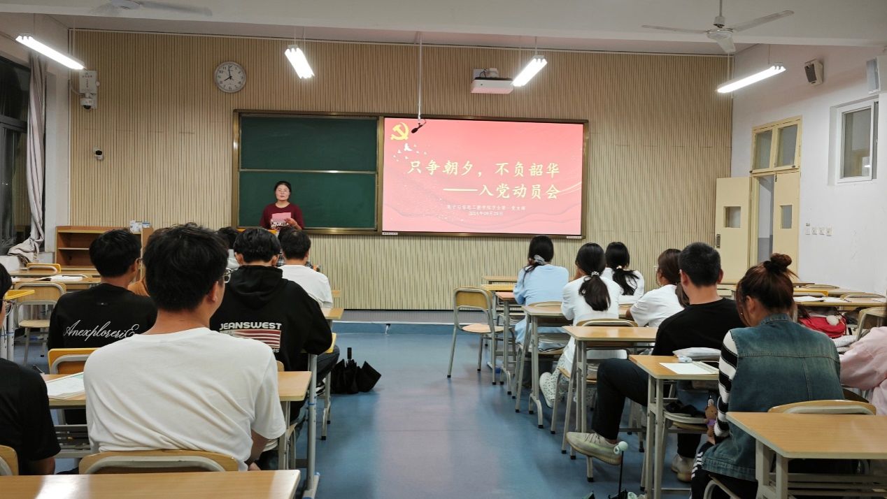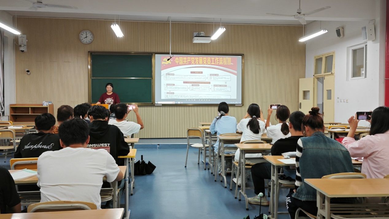员工第一党支部书记翟子轩从“什么是中国共产党、为什么要加入中国共产党、加入中国共产党需要做什么”三个方面进行讲解,鼓励同学们要树立共产主义远大理想,坚定中国特色社会主义信念,通过对习近平新时代中国特色社会主义思想、党的路线方针政策等理论知识的学习,不断深化对党的认识。他希望同学们大学期间严格要求自己,踊跃递交入党申请书,尽快从思想上、行动上向党组织靠拢,争取早日成为一名光荣的中国共产党党员。
