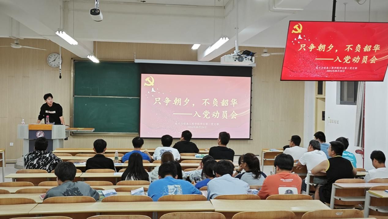 员工第二党支部中共预备党员2022级电子信息工程1班的桑俊毅详细讲解了入党申请书的相关注意事项与党员发展流程,表示加入中国共产党的大门始终为那些有理想、有准备、有抱负,立志为共产主义奋斗终生的有志青年敞开,鼓励同学们积极向党组织靠拢,主动提交入党申请书,积极向上,端正政治思想,争做时代新人。