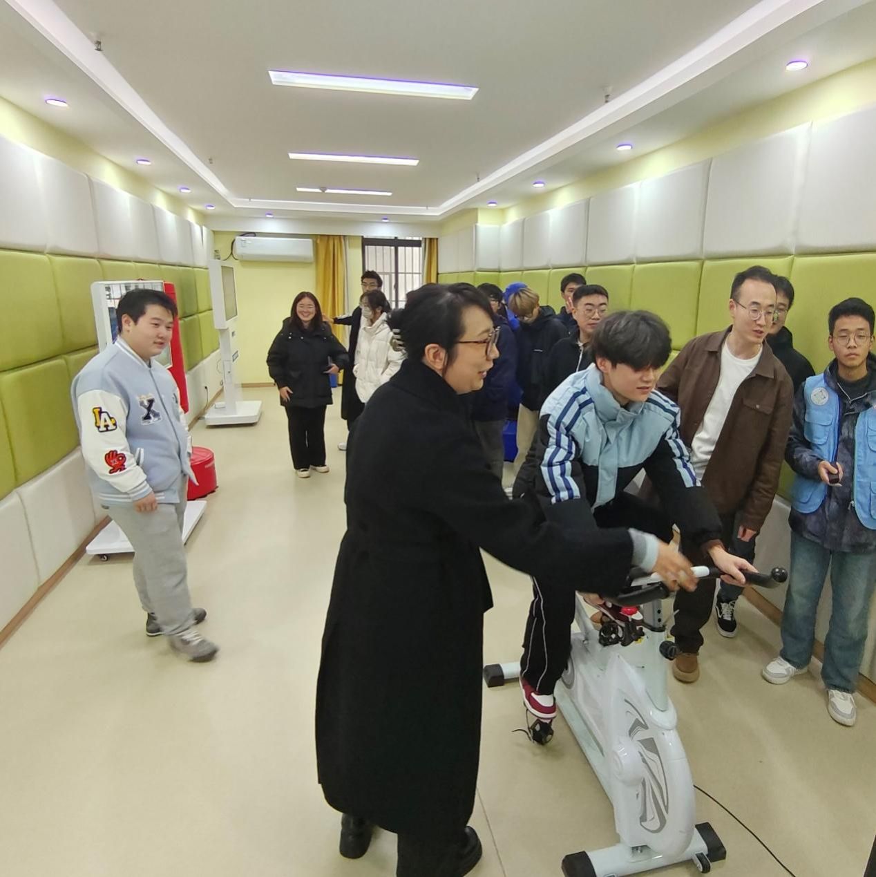 接着,唐明宇老师带领大家参观体验了心理自助系统、微笑训练系统和VR心理综合训练系统、以及心理咨询室、沙盘游戏室、心理放松室、音乐宣泄室、心理阅览室等功能室,为员工提供了一个轻松欢乐的环境,让他们能够放松身心,尽情享受游戏带来的快乐。