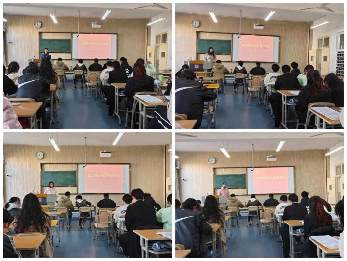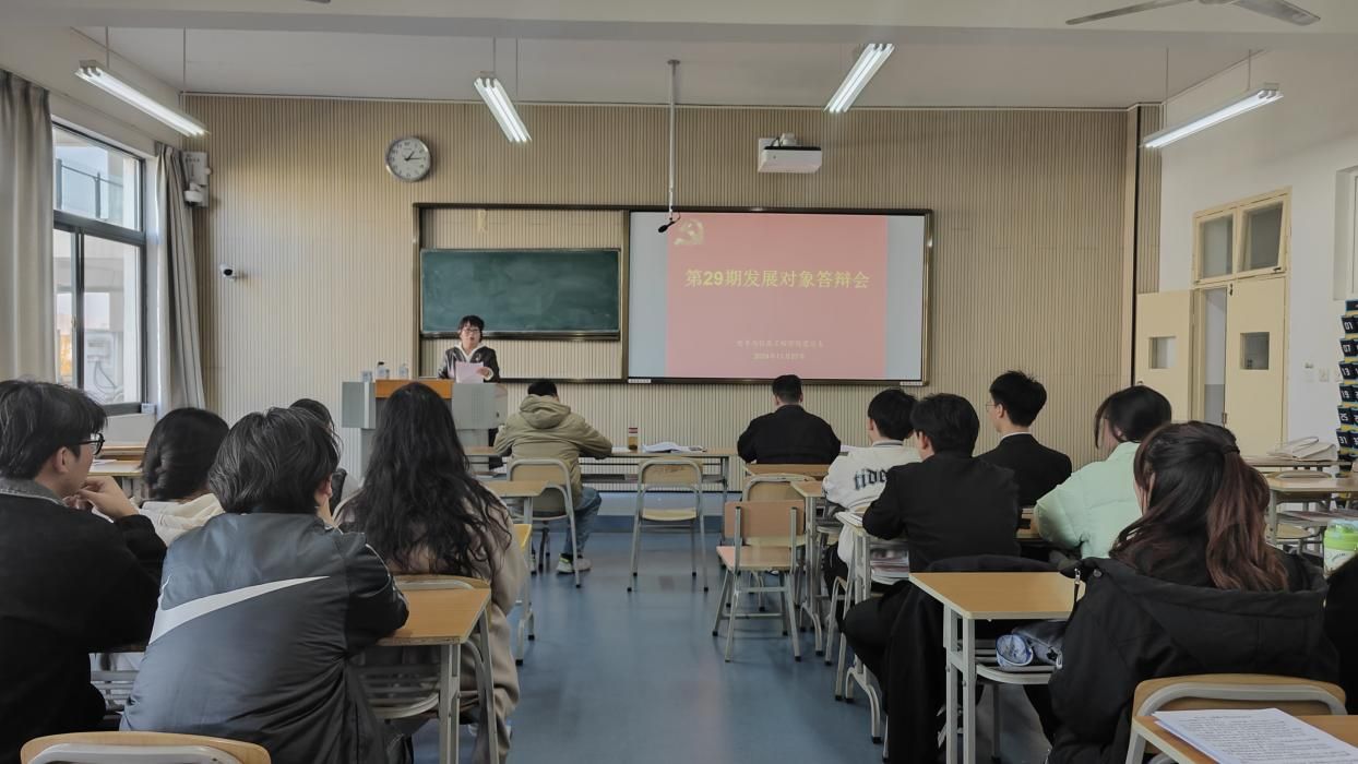 为进一步加强员工党员队伍建设,提高发展党员质量,2024年11月27日下午,公司党总支在1320教室召开第29期发展对象述职答辩会。公司党总支组织委员成英丽、员工第一党支部书记翟子轩、员工第一党支部组织(纪检)委员张宇航、员工第二党支部书记贾金兵、员工第二党支部组织(纪检)委员石纭昊参加第29期发展对象参加述职答辩会。会议由员工第二党支部中共预备党员桑俊毅主持。