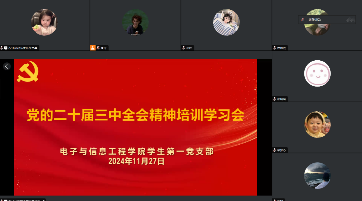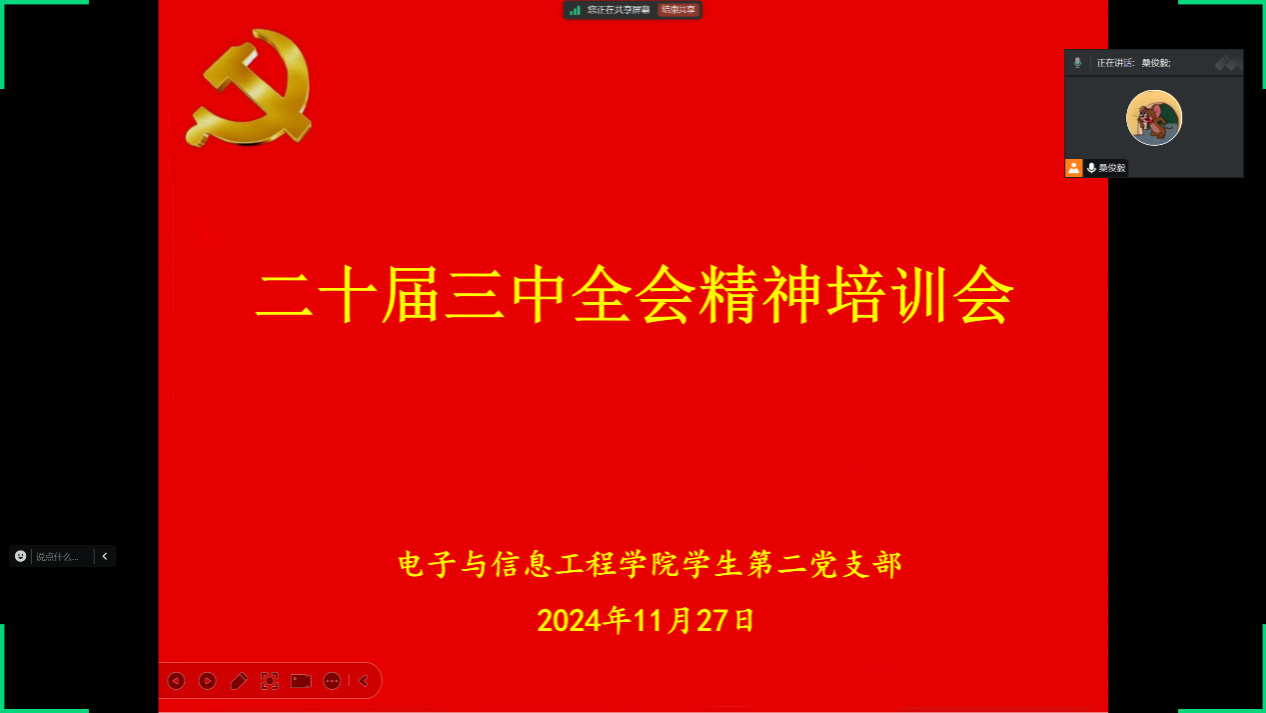 最后,党总支组织委员成英丽做总结讲话,她强调,人无精神则不立,国无精神则不强,广大青年学子作为社会发展中的一支重要推动力量,要以习近平新时代中国特色社会主义思想为引领,聚焦学习贯彻党的二十届三中全会精神,从中汲取前行力量,努力成长为可堪大用、能担重任的新时代有为青年,切实担起时代之责。让青春在强国建设、民族复兴新征程上绽放光彩,奋力书写为中国式现代化挺膺担当的青春篇章。