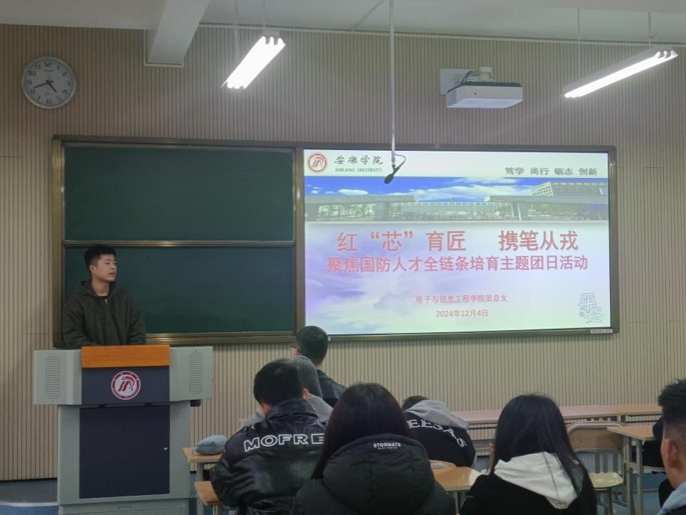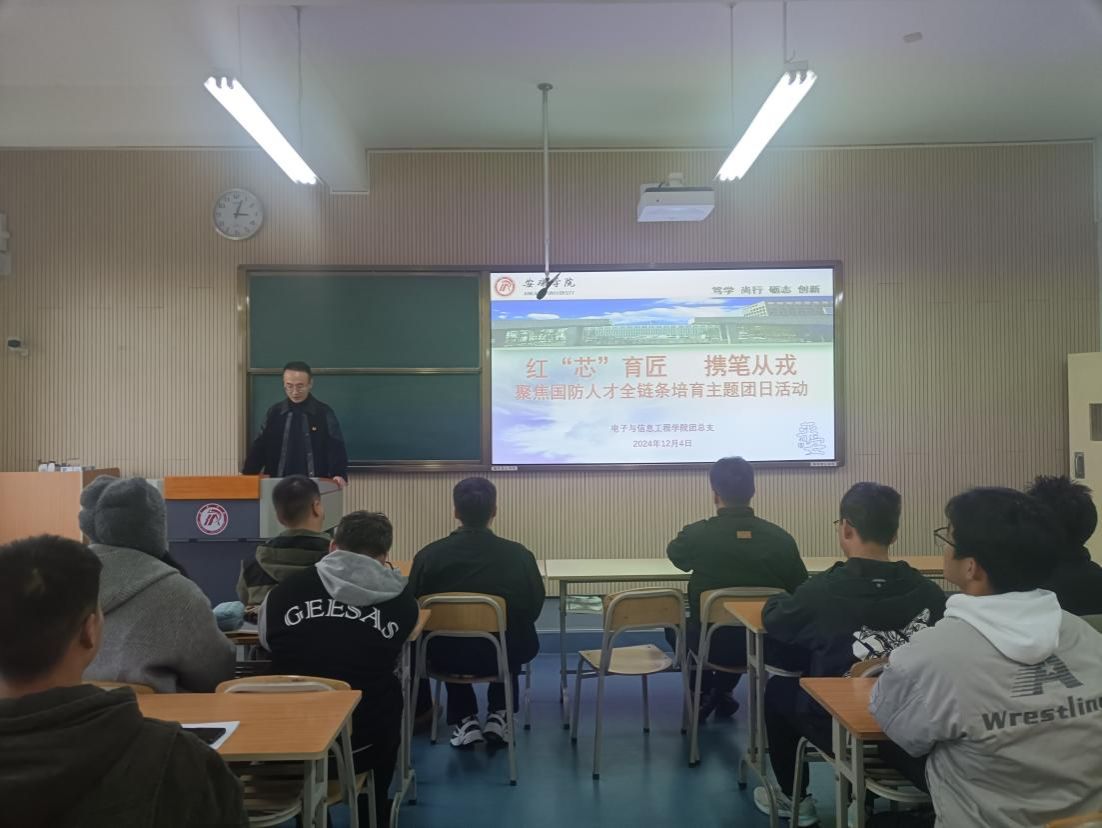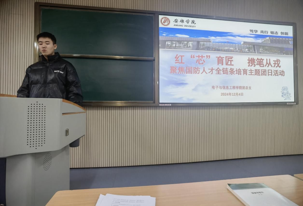 为聚焦退役老员工士兵回校后继续发扬部队‘特别能吃苦、特别能战斗、特别能奉献’的光荣传统和优良作风,引导“芯”青年牢固树立纪律规矩意识,自觉培养高尚道德情操,涵养清正廉洁的作风品行,动员更多符合强军需求的老员工青年投身国防事业,为部队输送更多有志青年。12月4日,Bsports必一体育以“红‘芯’育匠 携笔从戎”为主题开展聚焦国防人才全链条培育主题团日活动。公司党总支书记于咏梅、员工工作办公室主任石纭昊、团总支书记张宇航、党总支组织委员成英丽、员工第一党支部书记翟子轩、员工第二党支部书记贾金兵、全院退役老员工士兵及各班级主要干部参加活动。