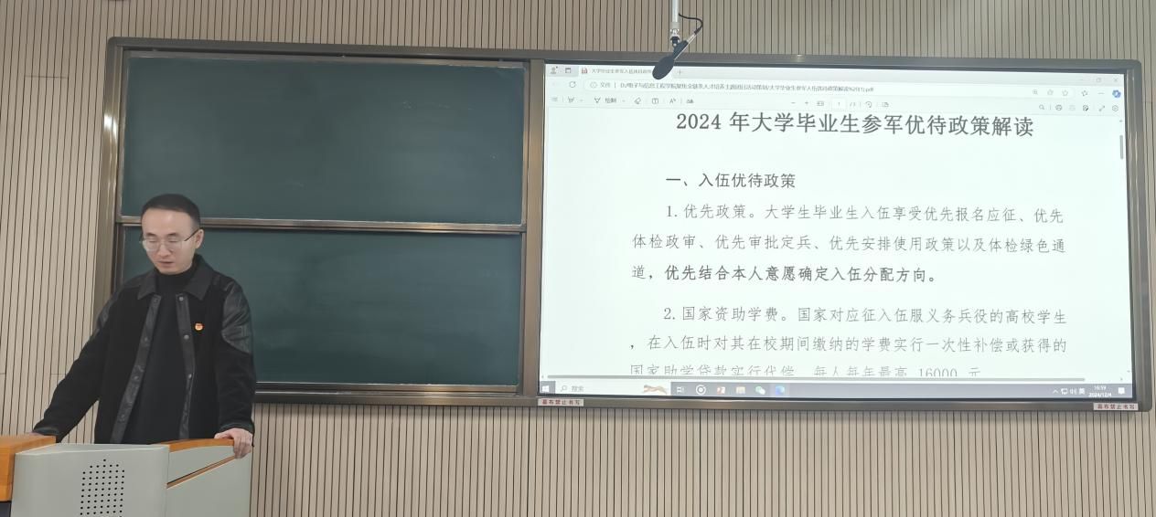活动中,张宇航结合退役老员工士兵的个人经历,向参与活动的各年级员工干部进行了征兵政策宣讲,从部队的基本情况、参军入伍的意义、退伍后的安置三个方面,运用丰富的案例、深入浅出讲解了参军入伍的作用和意义,并从个人、家庭角度给大家算清了“三笔账”,即政治账、成才帐和经济账。他强调,兵员征集是国防建设的基础,是实现强军梦的基石,是我们每个人义不容辞的责任,是国家生存发展的客观需要,全体员工干部必须了解掌握政策,做一名征兵政策宣传员,用自己的实际行动为强军事业作出贡献。