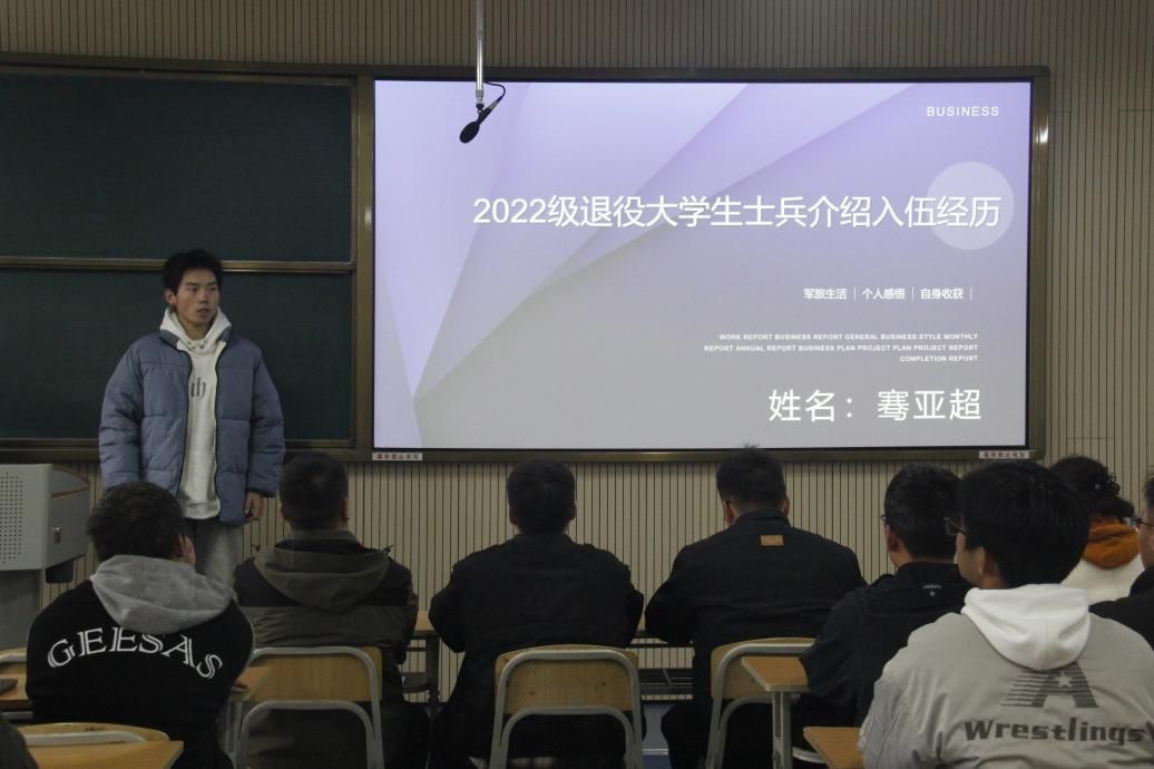 2022级物联网工程1班苗安宁,原服役于中国人民解放军陆军某部。他讲到,两年的军旅生涯,他学会了面对挑战时的勇气,面对压力和困难时的应对能力,以及在困境中保持冷静和决策能力。他认为部队生活为退役老员工士兵提供了一种独特的机会,让他们在军事技能、领导力和品质方面得到全面发展与成长。