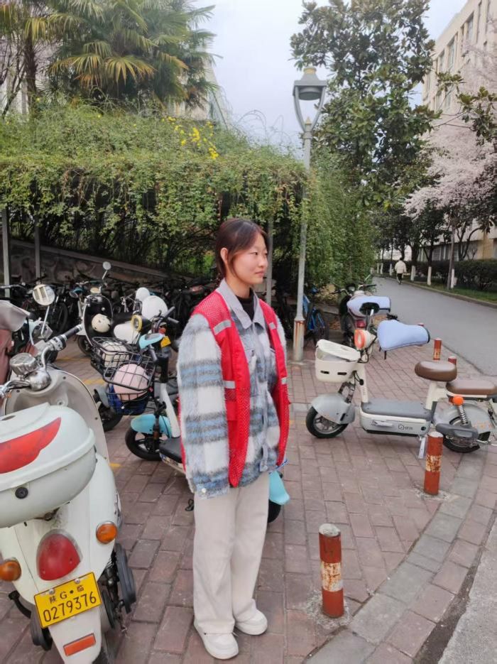 活动期间,志愿者们身着标志性的红马甲,活跃在校园的各个停车区域。他们针对电动车、摩托车、自行车存在的乱停乱放,以及占用人行道等公共区域的现象,积极展开劝导和整理工作。志愿者们将不规范停放的自行车和电动车统一挪至非机动车停车点位,并按照泊位内箭头方向统一调整车头朝向,使非机动车停放整齐有序。