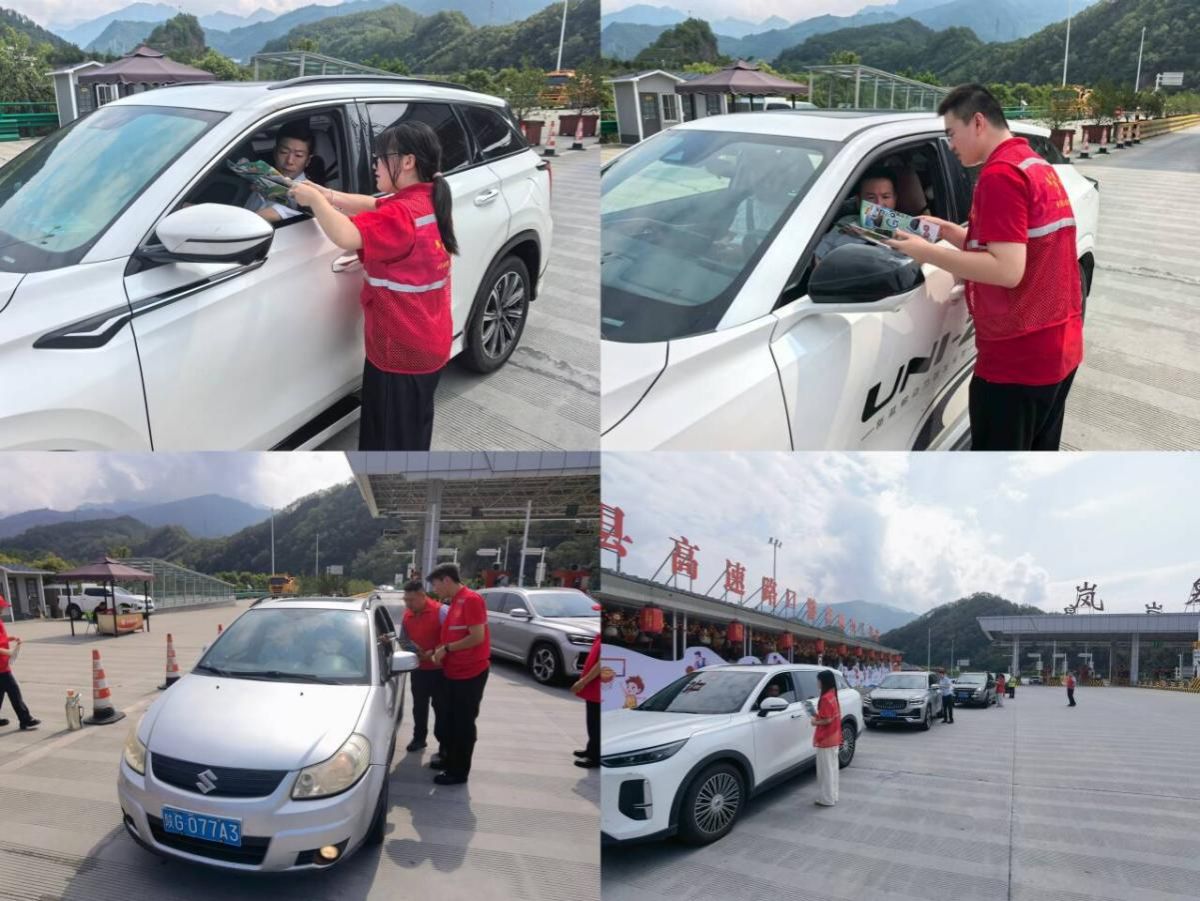 在烈阳下,收费站的工作人员与老员工志愿者们依托专业素养,并肩协作,开展安全疏导、路线咨询及道路保畅工作,同时精准提供赛事动态、景区导览和食宿推荐。他们不仅娴熟指引方向、答疑解惑,更将收费站窗口化身为岚皋的微型名片,主动分发精心准备的本地旅游指南与赛事日程,聚焦“高速路口”场景下游客最迫切需求:“怎么走?”“赛事在哪?”“住哪里?”“吃什么?”“玩什么?”。面对骤增的车流,志愿者们及时疏导,化解拥堵于无形。遇见行李繁重的观众,更是伸出援手,让旅途的终点洋溢着暖意。服务点内,清凉的矿泉水与应急药品默默守护着每一位需要的人。