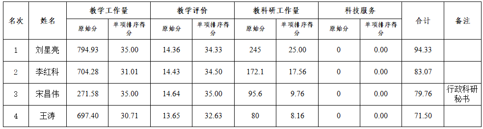 说明:依据《Bsports职称评审量化考核办法》,讲师职称评审客观分积分由教学工作量、教学评价、教科研工作量、社会服务四部分组成,其分值比例依次为35%、35%、25%、5%。