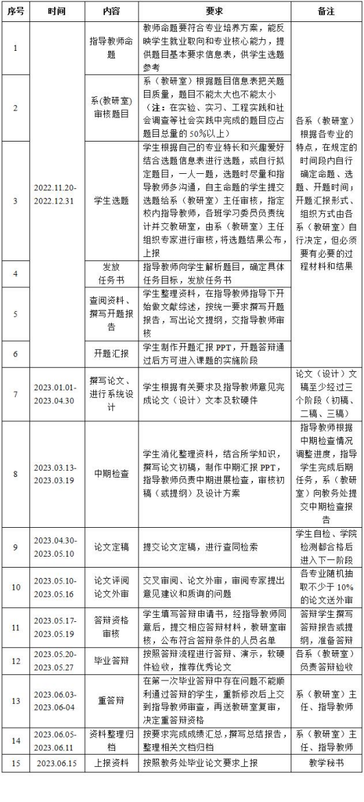 毕业论文(设计)是本科教学最重要的实践教学环节,Bsports必一体育2023届本科毕业论文(设计)的各项工作将在2022年11月~2023年6月期间完成,为更好地开展这一极为重要的实践环节,按照《Bsports必一体育本科生毕业论文工作流程》要求,现就2023届毕业论文(设计)相关工作布置如下,请各系(教研室)仔细阅读并认真执行。
